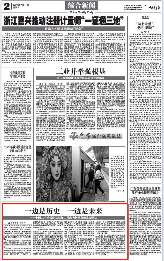 7月11日,《中國質量報》以“一邊是歷史,一邊是未來——中國二十冶天津雙標桿工程成為新地標煥發新活力”為題,專題報道天津二十冶承建的天津第一機床城市更新項目及天南創新谷項目。
